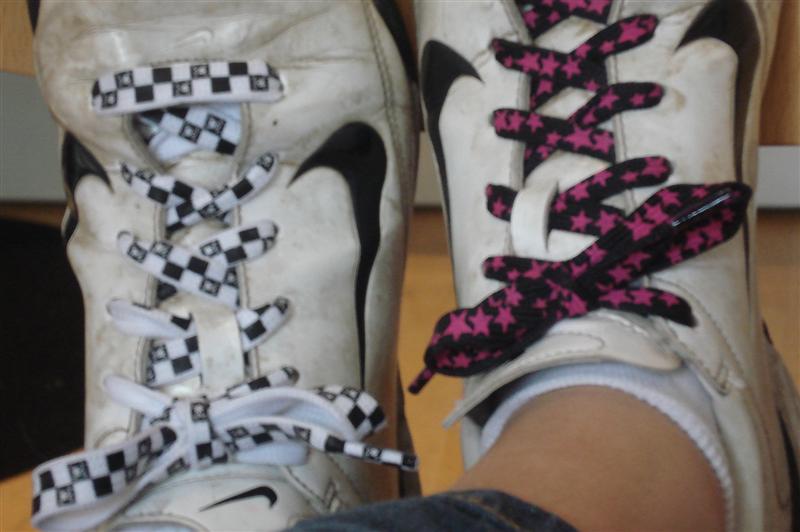 mee op te leuken. Eentje zwart met roze sterren en eentje wit met zwarte blokjes met daarin witte doodshoofden.