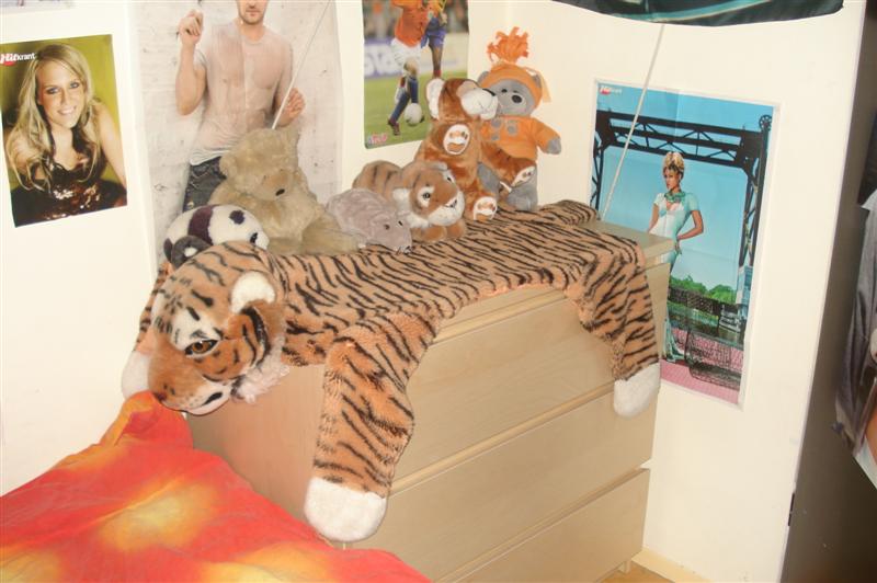 Heel mijn kamer is een rotzooi want ik moest alles uit de kasten halen die verschoven moesten worden en dat